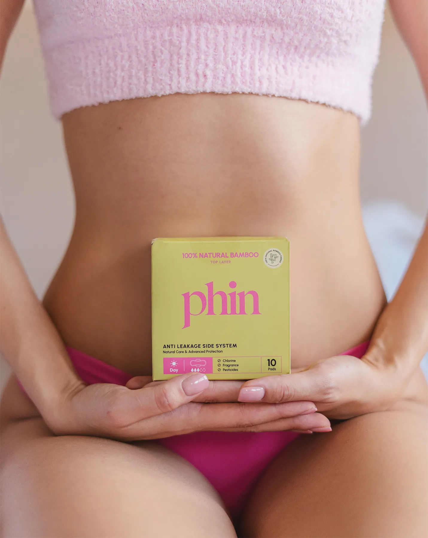Phin folosește fibre naturale din bumbac organic și fibre naturale din bambus, fără parfumuri, clor sau substanțe toxice. Produsele sunt testate dermatologic și create pentru confort real.