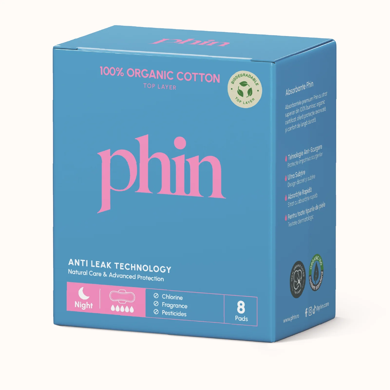 Pentru că noaptea nu vrei situații. Vrei să știi că e totul ok și tu doar să dormi. Phin îți oferă absorbante din bumbac organic sigure, curate și adaptate nevoilor tale. Atât.