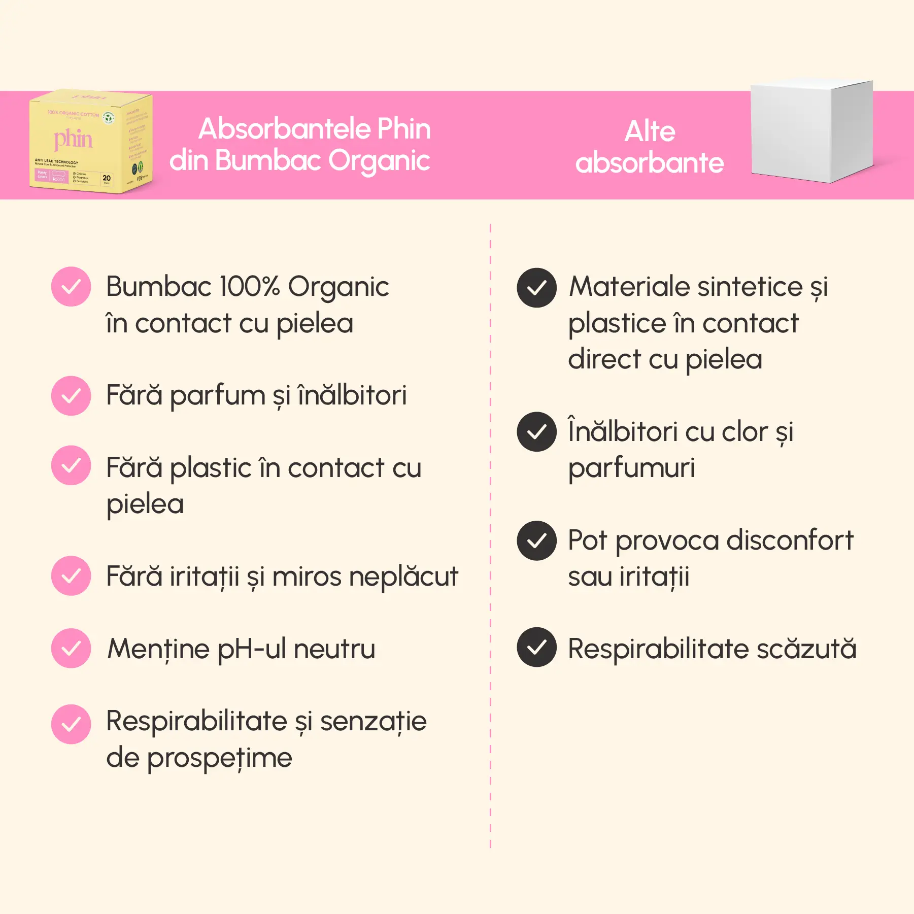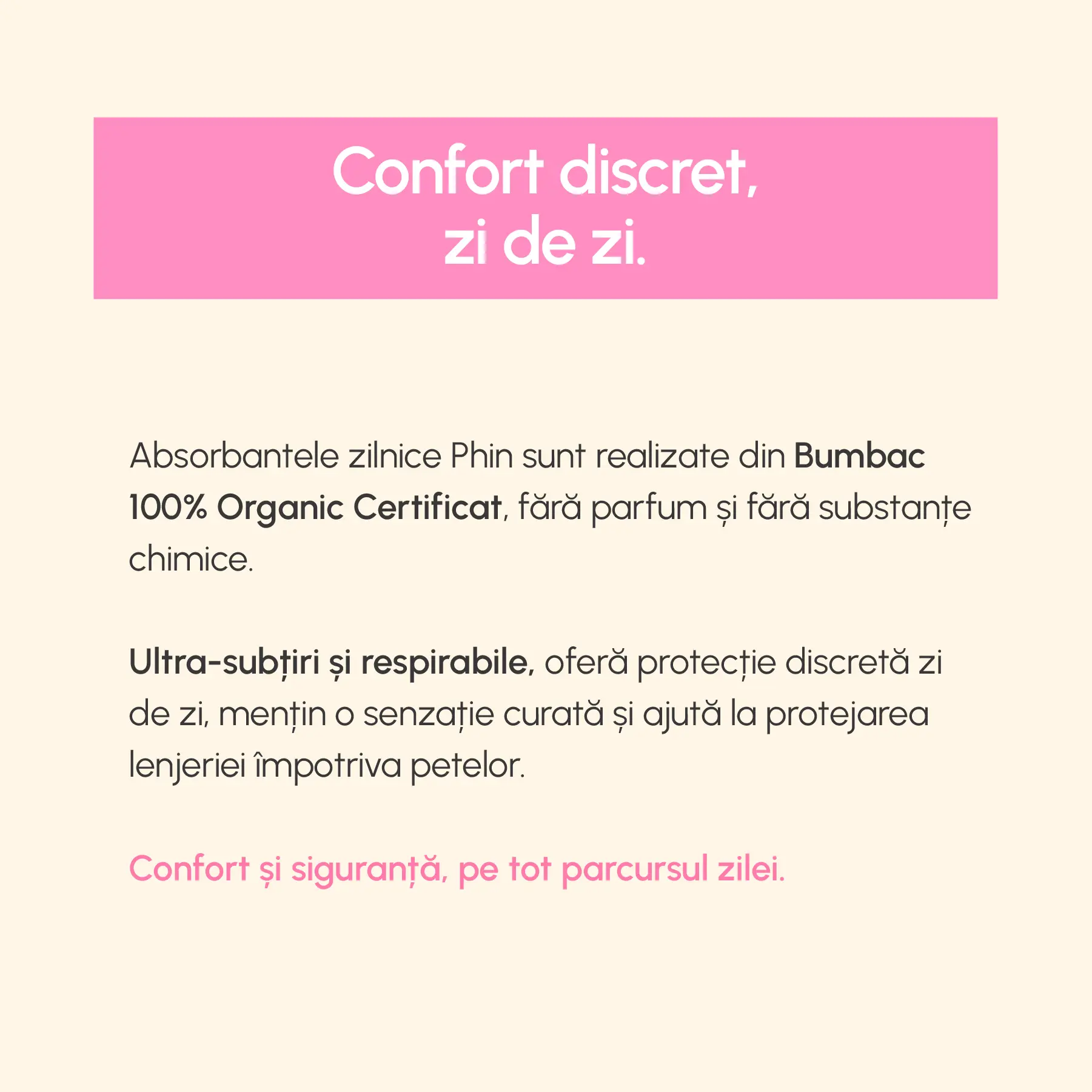 Pentru că știi ce pui pe pielea ta și pentru că adorăm ritmul fiecărei zi, fără bătăi de cap. Phin face produse de igienă feminină sigure, curate și bine gândite. Atât.