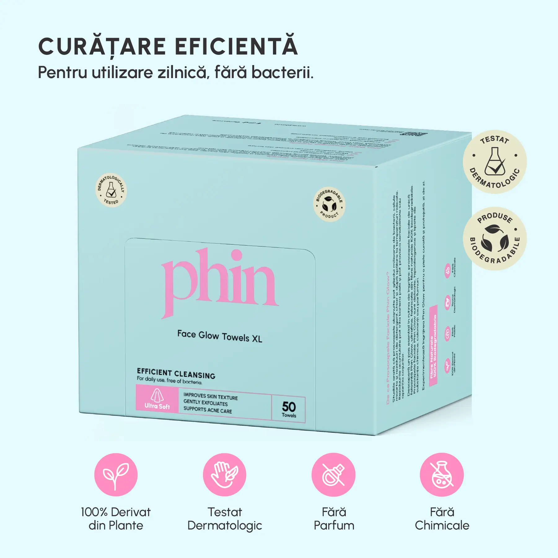 Complet biodegradabile, prosoapele Phin Glow sunt concepute pentru o curățare eficientă și responsabilă, fiind potrivite pentru utilizare zilnică, inclusiv pentru pielea sensibilă.