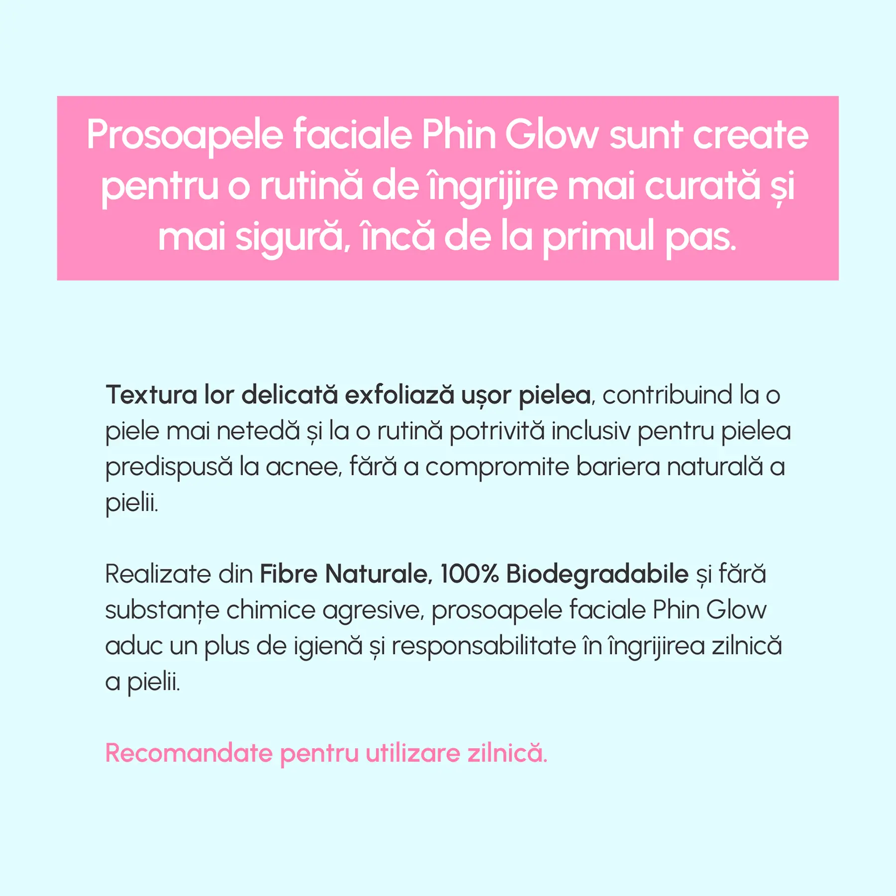 Complet biodegradabile, prosoapele Phin Glow sunt concepute pentru o curățare eficientă și responsabilă, fiind potrivite pentru utilizare zilnică, inclusiv pentru pielea sensibilă.
